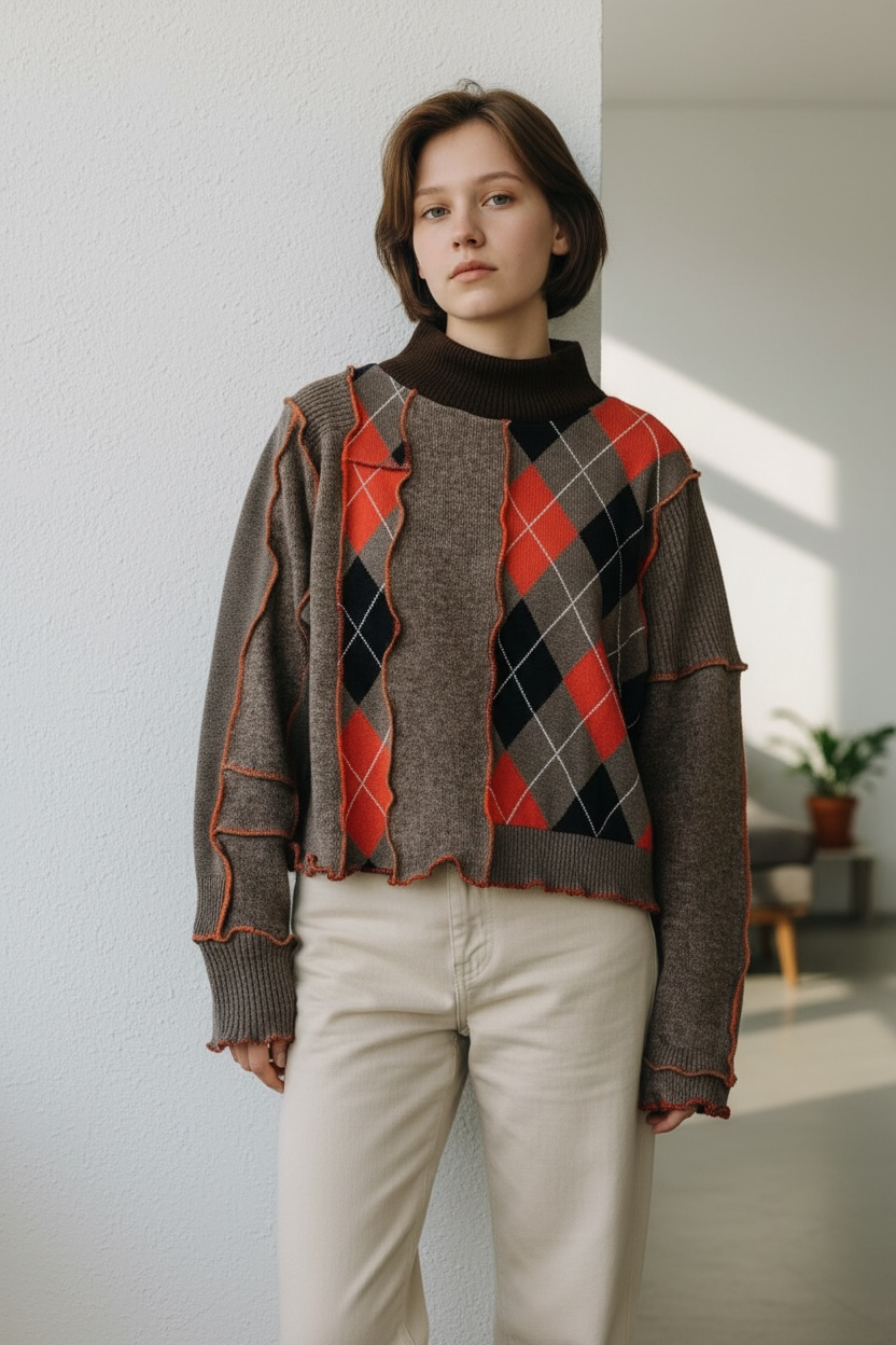 Argyle Patchwork Bunny Sweater - Large