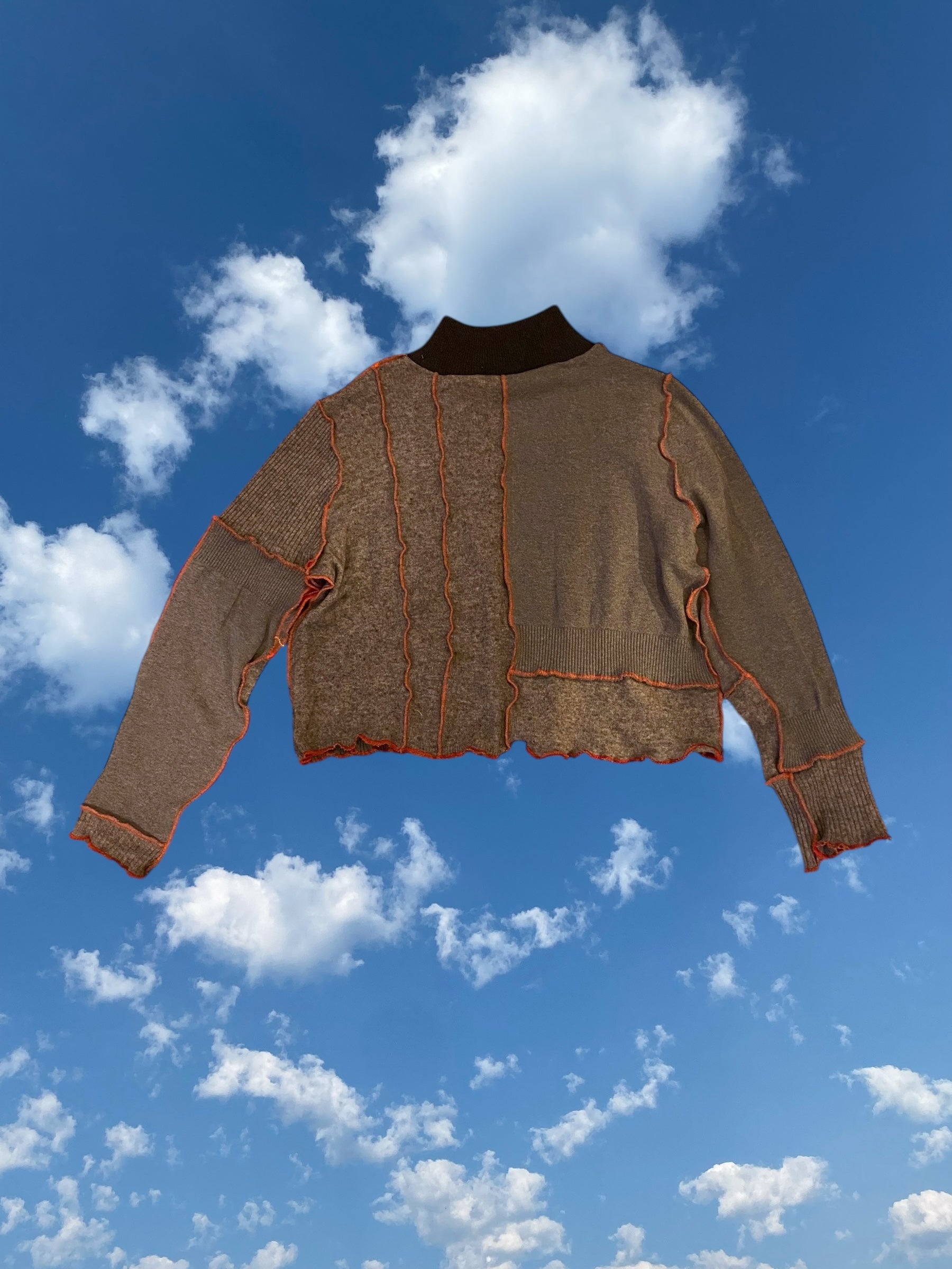 Each sweater comes together in a slow and intentional jigsaw puzzle process! And each one turns out completely one of a kind, and full of love and care. Has a slightly dropped shoulder for a roomy shoulder and armhole fit, and a slouchy long sleeve. Sweaters are finished with recycled ribbing and collar.