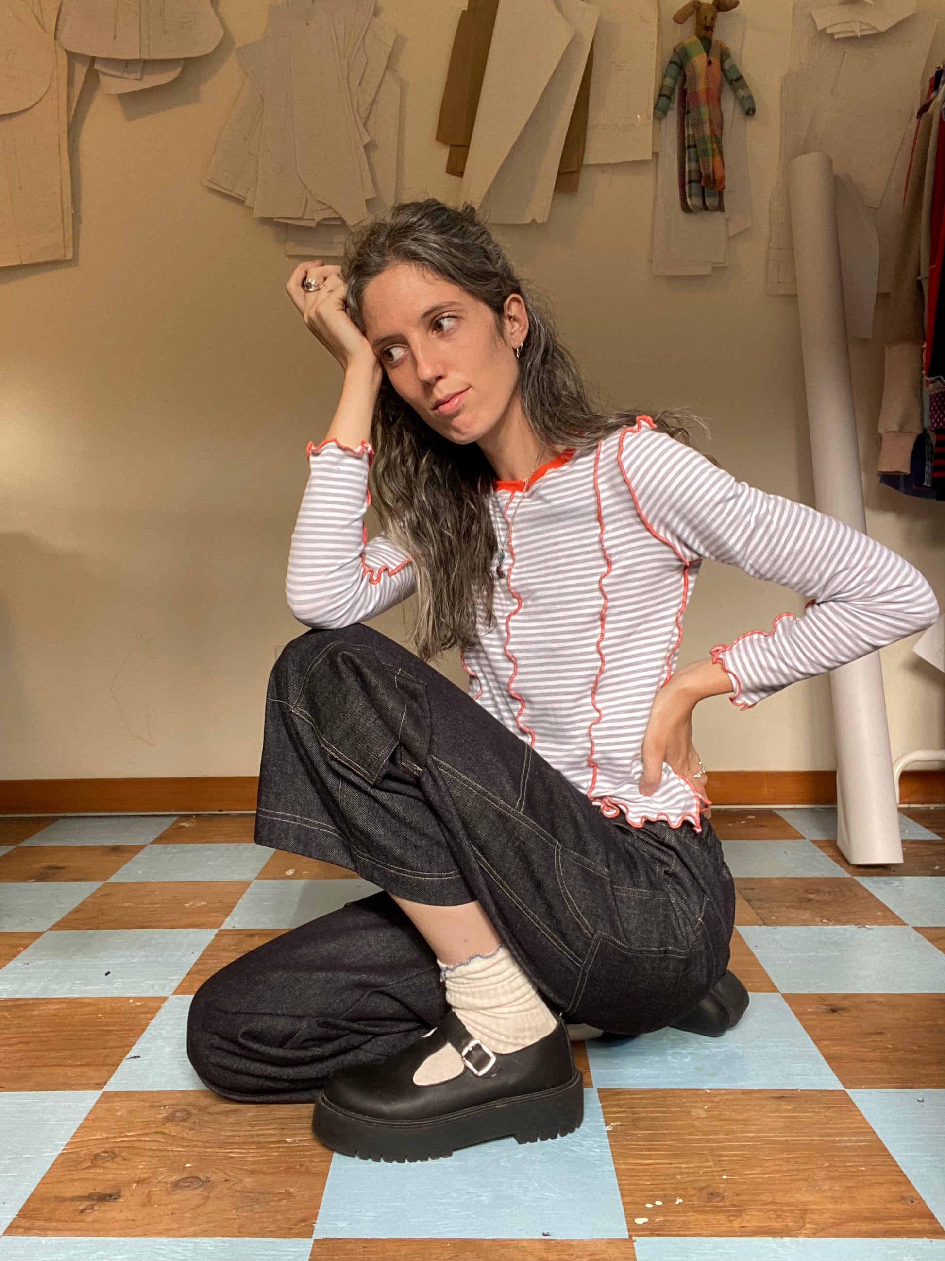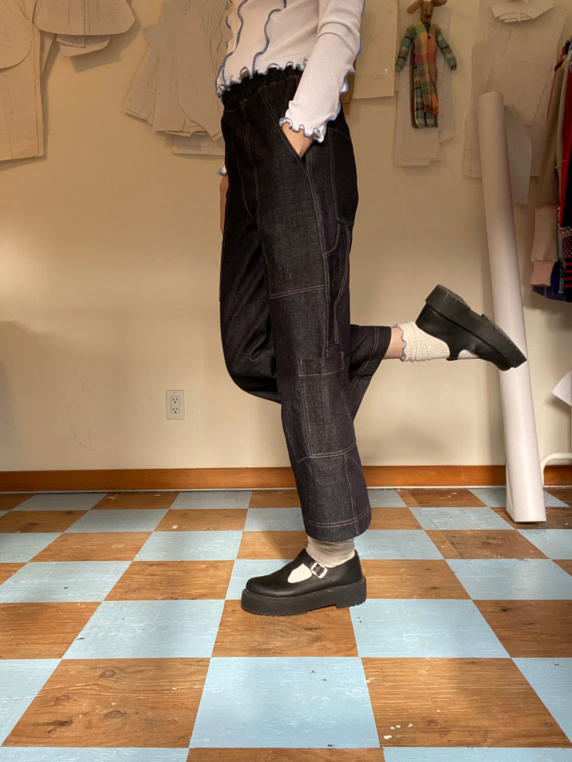 Inspired by a vintage pair of jeans with a tool pocket at the back, these are part workpants and part culottes. I created this take on my pant design highlighting comfort and pocket details. They became a more structured look of a wide leg trouser that are all about the pockets.