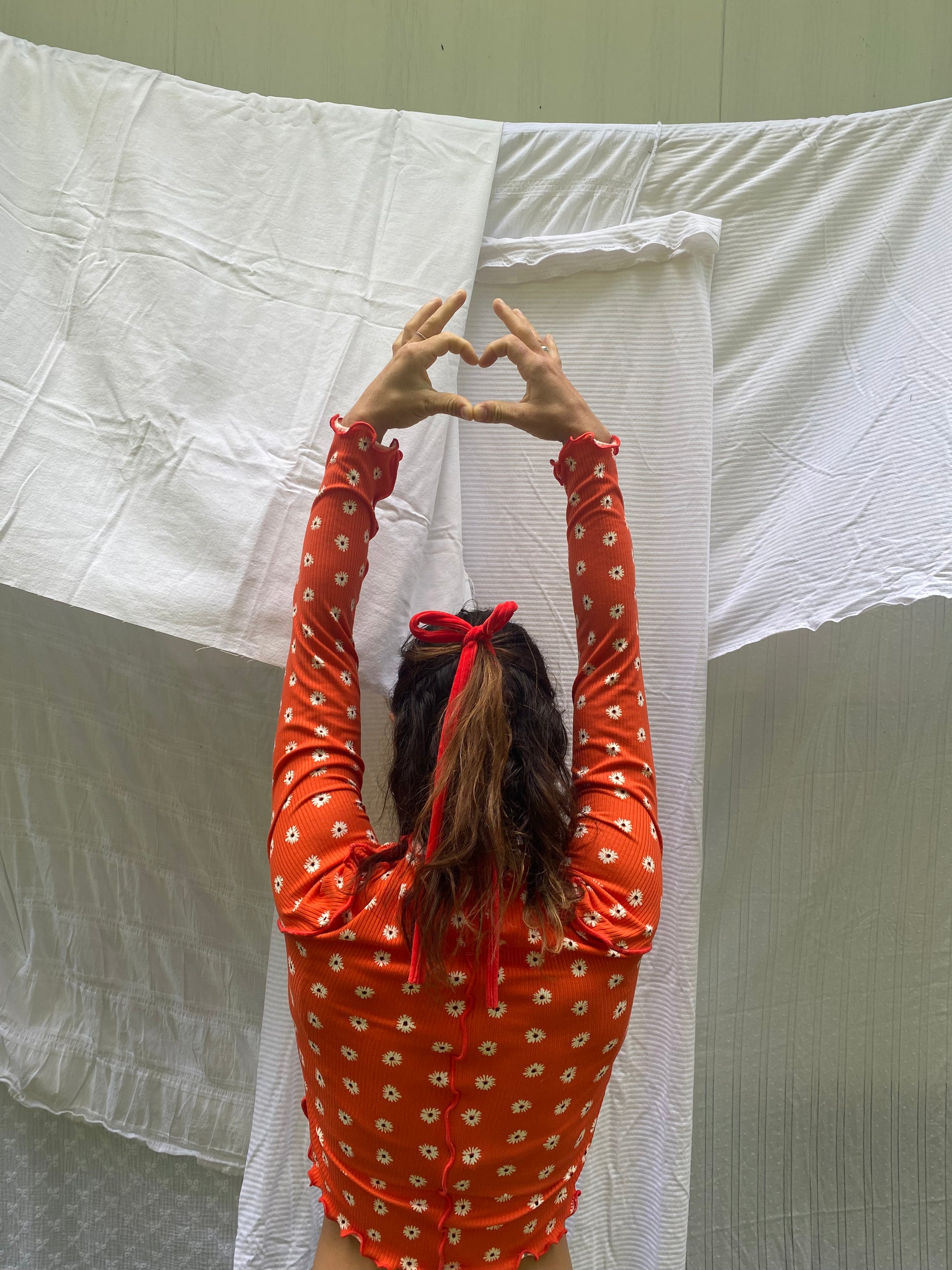 100% recycled material - deadstock cotton/poly ribbed knit.