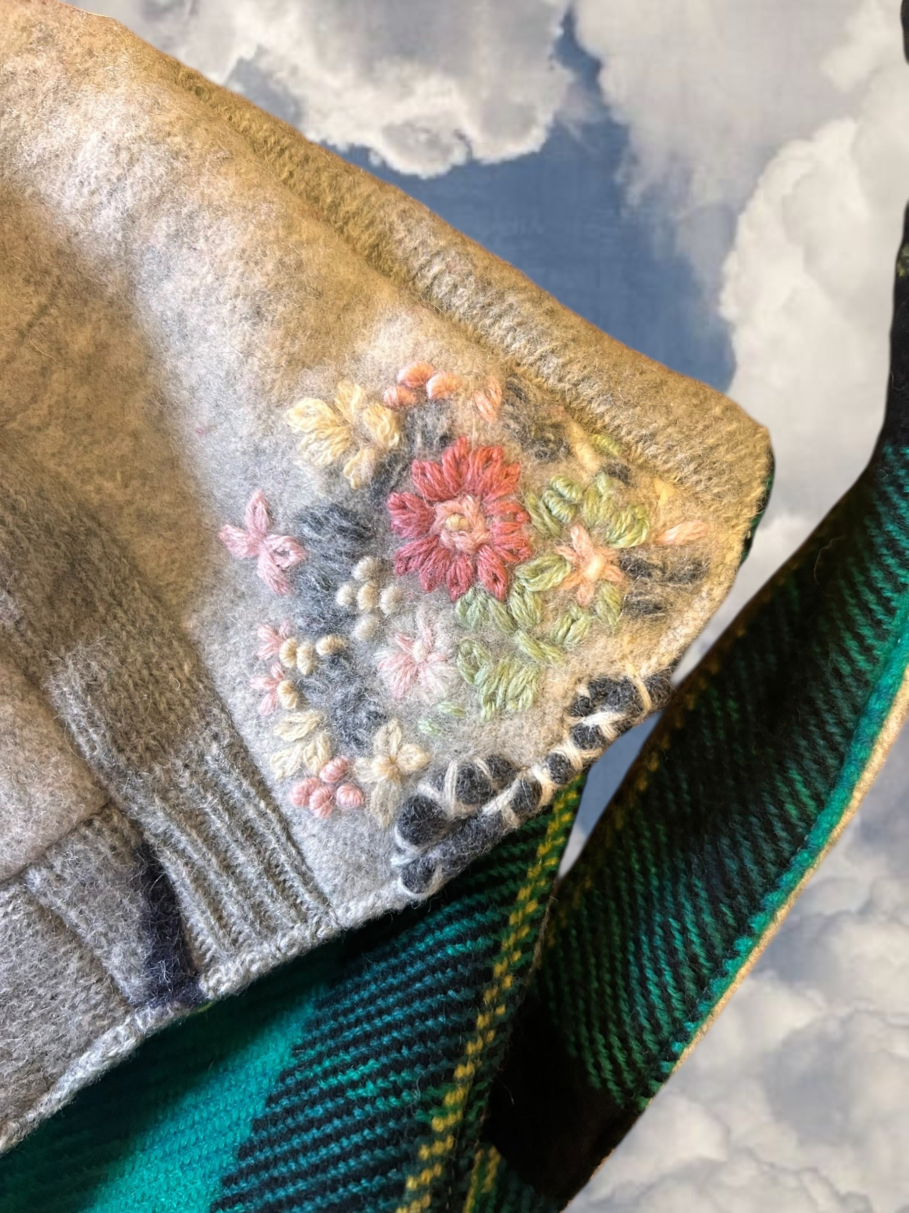 Care: handwash in cool water and hang or lay flat to dry is recommended to preserve your handmade piece. Although the cashmere was pre-washed it does run the risk of shrinking slightly if washed in very hot water.