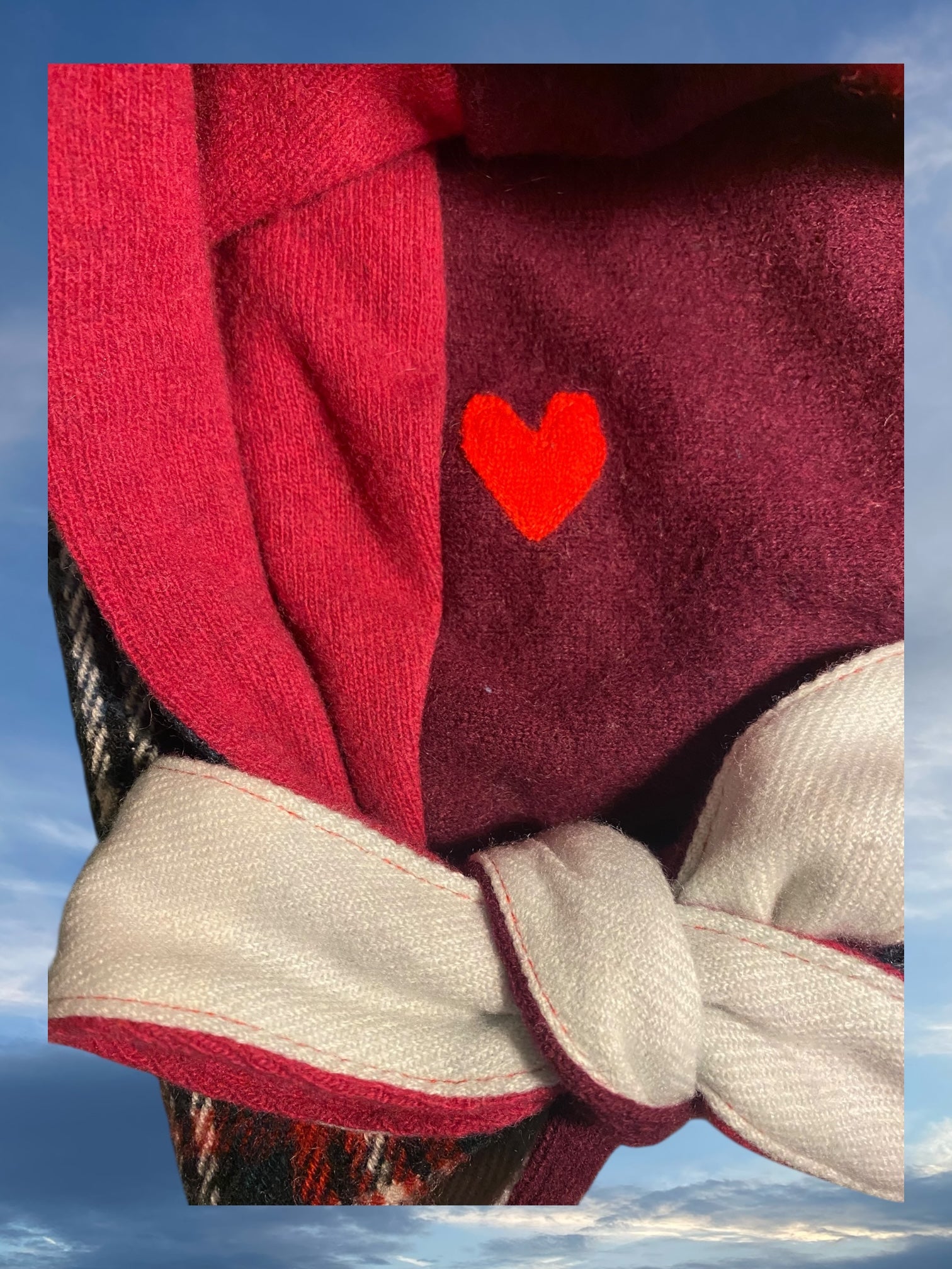 Care: handwash in cool water and hang or lay flat to dry is recommended to preserve your handmade piece. Although the cashmere was pre-washed it does run the risk of shrinking slightly if washed in very hot water.